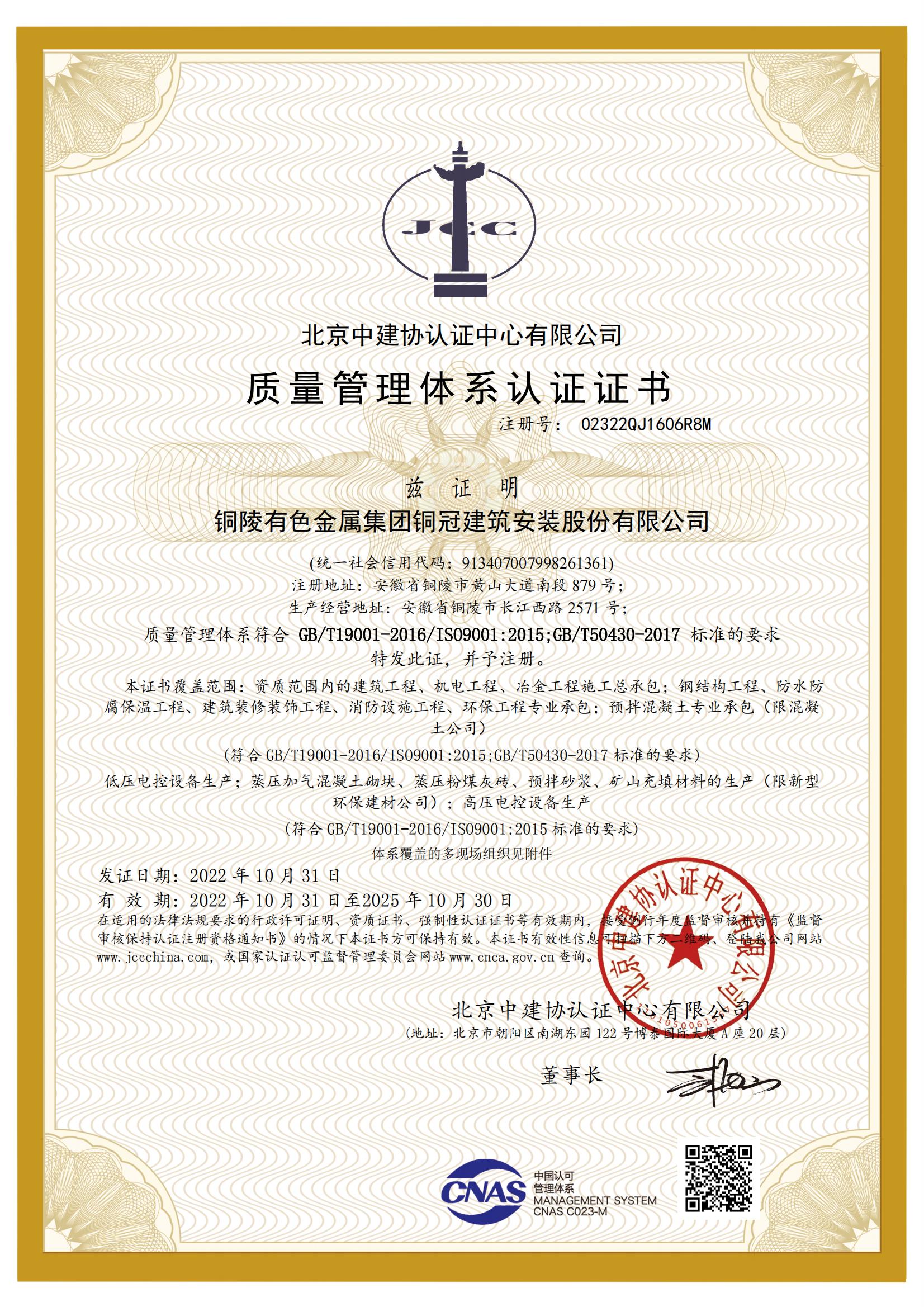 有色金屬工業(yè)建設(shè)工程質(zhì)量檢測(cè)機(jī)構(gòu)資質(zhì)證書
